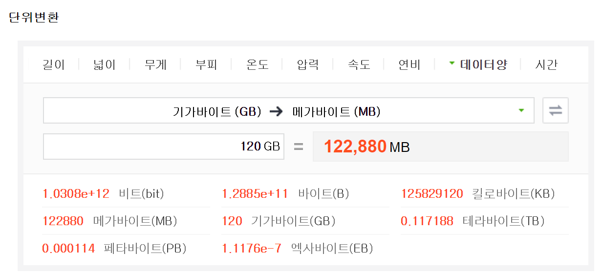 ※ 네이버와 다음의 단위 변환기