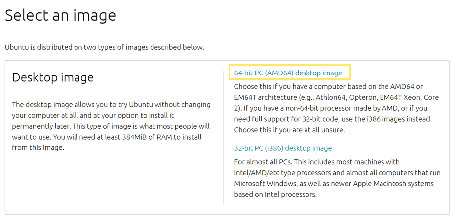 Select an image Ubuntu is distributed on four types of images described below. Desktop image The desktop image allows you to try Ubuntu without changing your computer at all, and at your option to install it permanently later. This type of image is what mo