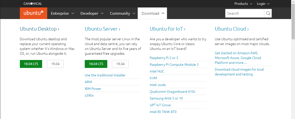 18.04 LTS, 19.04 등 다른 버전이 필요한 분은 아래 우분투 공식 홈페이지에서 찾아 다운로드하시면 됩니다.